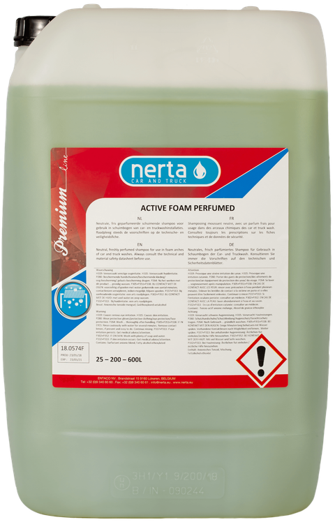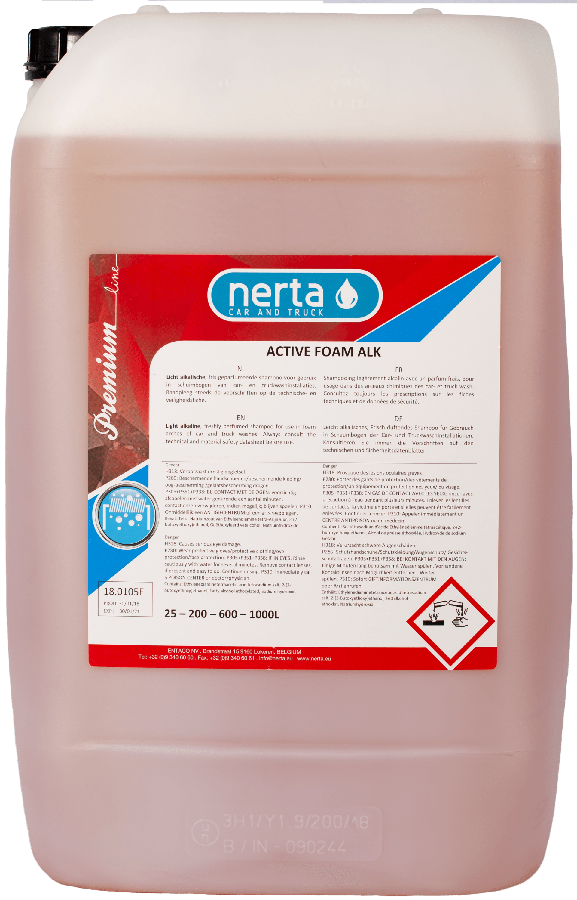 NERTA ACTIVE FOAM ALK ist ein leicht alkalisches, frisch parfümiertes Shampoo zur Verwendung im Schaumbogen. In Kombination mit Pressluft und Wasser bekommen Sie einen weichen, sahnigen Schaum. Kann auch als Shampoo auf Bürstenspritzen verwendet werden.