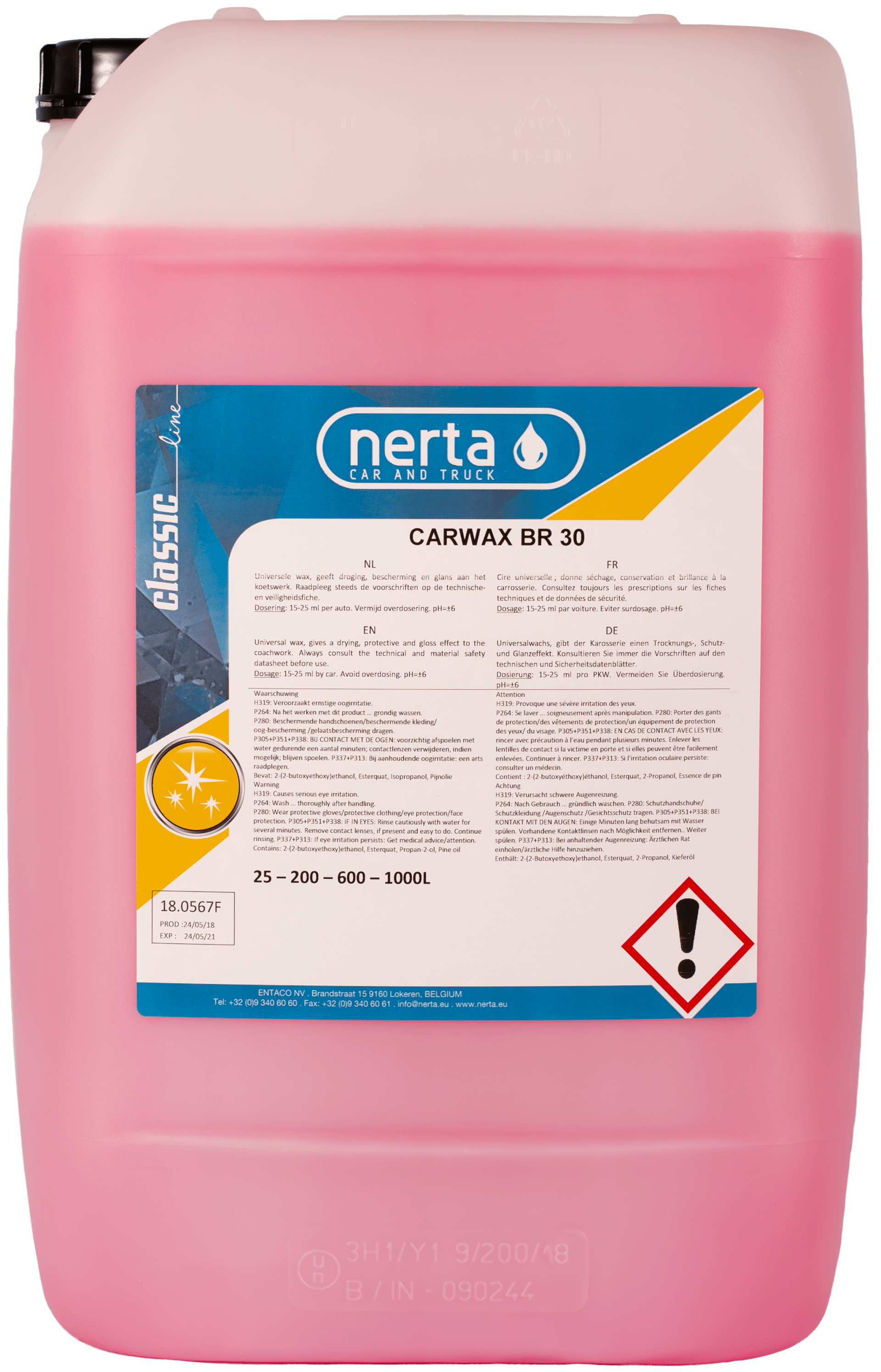 NERTA CARWAX BR30 ist ein klassisches Wachs. Gewährleistet Trocknung, Konservierung und Glanz auf der Karosserie.