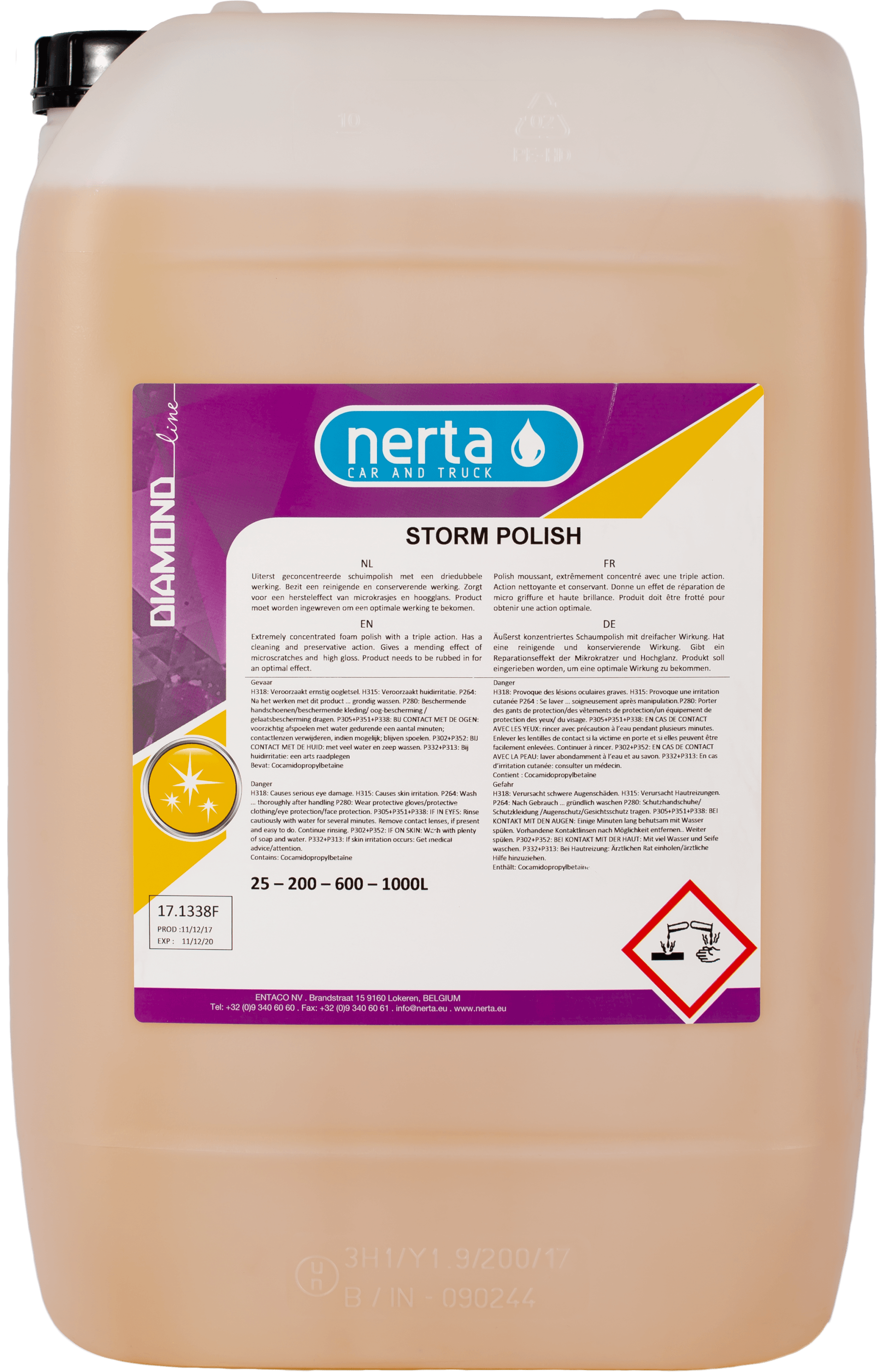 NERTA STORMPOLISH ist ein hoch konzentriertes Foampolish mit dreifacher Wirkung und einem angenehmen Geruch. Zum Gebrauch in Anlagen, in denen das Produkt eingerieben wird. Das Hartwachs ergibt eine gut geschützte, hochglänzende Karosserie.